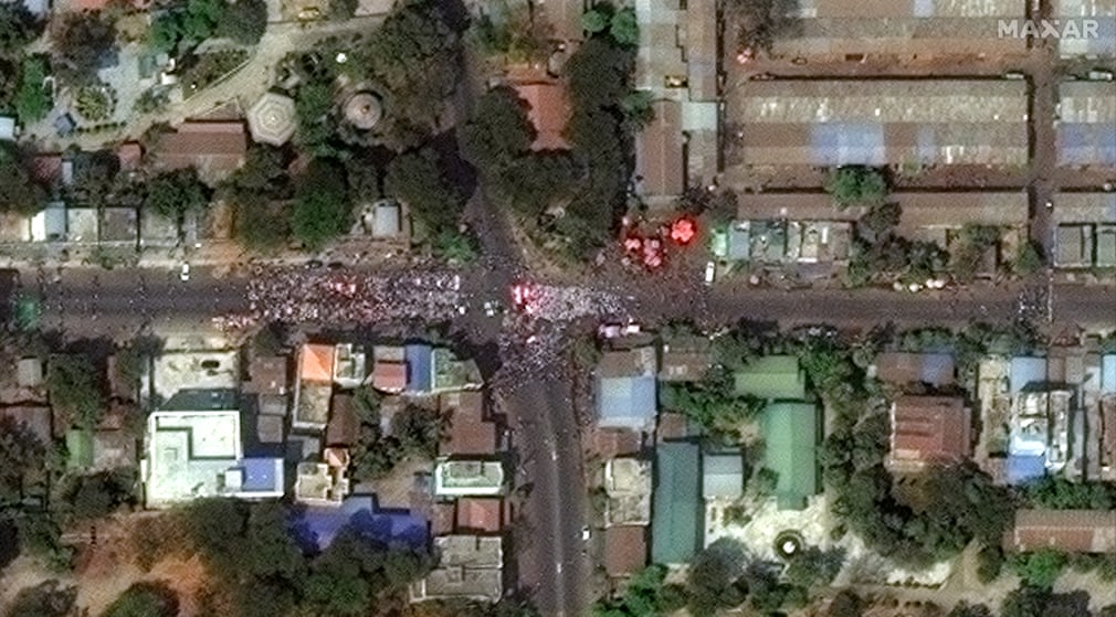 Người biểu tình lấp kín một con phố ở Myitkyina. (Ảnh: Guardian)