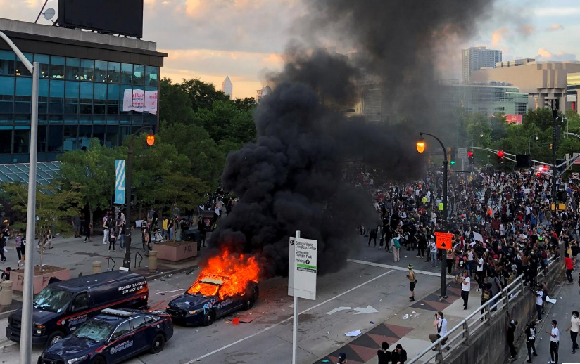 Các cuộc biểu tình ở Atlanta trở nên hỗn loạn và dữ dội. Một vụ hỏa hoạn được ghi nhận tại trung tâm thành phố, gần trụ sở của hãng tin CNN. Một vài phương tiện bị đốt cháy, trong đó có 1 xe cảnh sát. Người biểu tình đập vỡ cửa kính tòa nhà của CNN cùng nhiều cửa hàng. Cảnh sát tìm cách giải tán đám đông, nhưng bị ném chai lọ vào người.