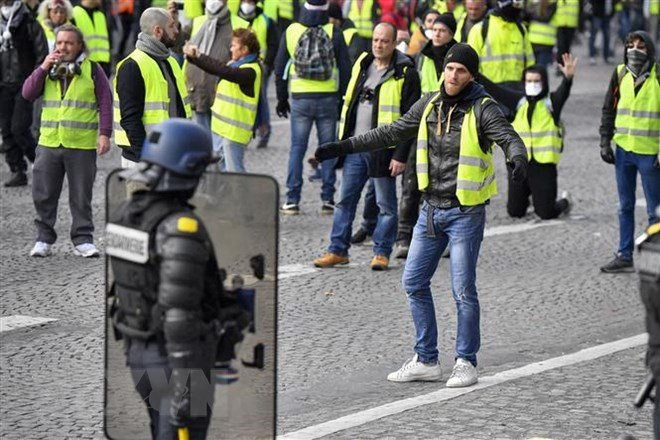Vào đầu buổi chiều ngày 15/12, cảnh sát đã sử dụng hơi cay tại đại lộ Champs-Elysees, nơi là tâm điểm của các cuộc biểu tình trước đó, trong bối cảnh khoảng 500 người biểu tình "Áo vàng" tụ tập để phản đối chính quyền của Tổng thống Emmanuel Macron.