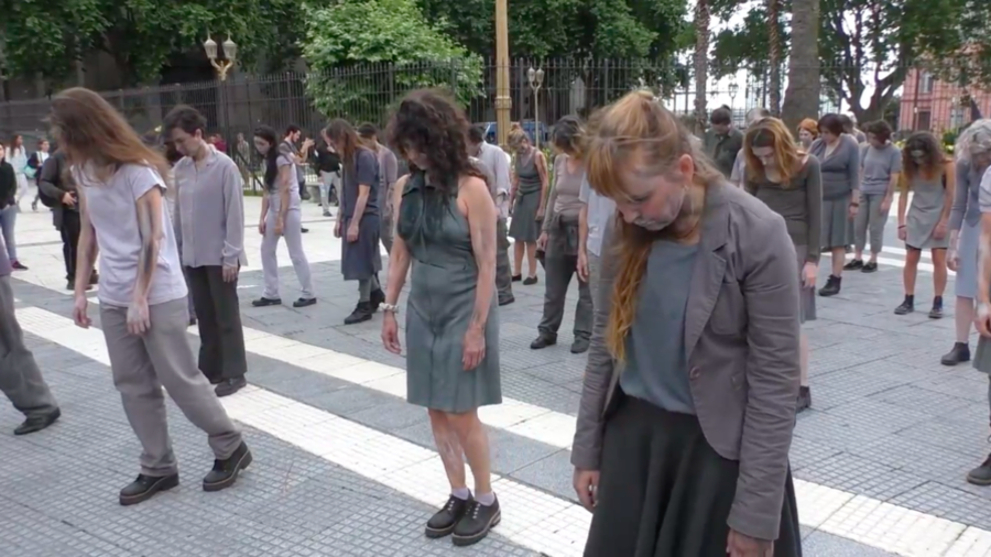 Theo Sputnik, một nhóm đông người hóa trang với làn da và quần áo xám xịt theo kiểu xác sống diễu hành trên các con phố tại thủ đô Buenos Aires, Argentina ngày 30/11, bên lề hội nghị G20.