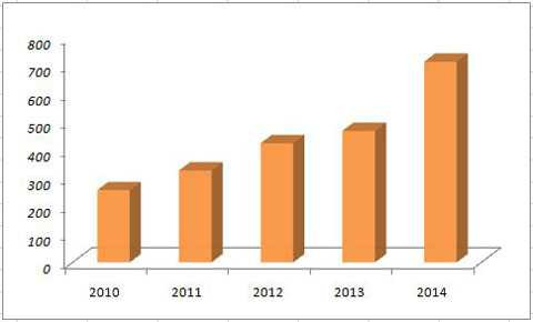 | Doanh số bán hàng của Big C Việt Nam trong 5 năm qua. Đơn vị: triệu euro. Nguồn: Groupe Casino |