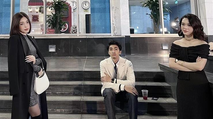 Khoảnh khắc nam diễn viên xuất hiện cùng “vợ real” Phương Nga và “vợ hờ” Quỳnh Lương.