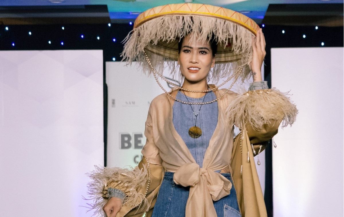 Trên sàn diễn, Minh Cúc sải bước tự tin khoe thần thái cuốn hút không thua kém những người mẫu chuyên nghiệp.