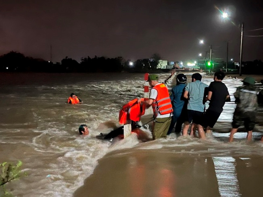 Trước đó VTC News đưa tin, cũng tại đoạn tràn này vào tối 15/11, Công an xã Phước Hiệp và Tổ xung kích phòng chống lụt bão thôn Giang Nam đã kịp thời cứu hộ thành công 2 thanh niên bị nước cuốn trôi khi đang điều khiển mô tô qua dòng nước lũ đang dâng và chảy xiết.