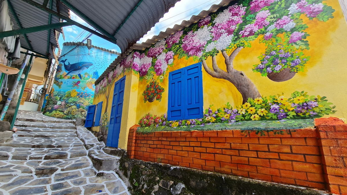 Những bức tường trong ngôi làng chài cổ được tô vẽ bởi bức tranh rực rỡ màu sắc, tái hiện không gian sống của người dân miền biển: cảnh ngư dân ra khơi đánh bắt cá trở về, cảnh chèo thuyền nan vượt sóng bão, cảnh chợ cá tấp nập, sinh vật đại dương đặc sắc hay trẻ em đang chơi đùa,…