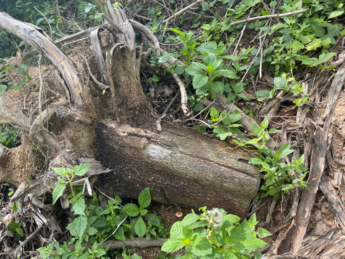 Gốc cây rừng đường kính lớn bị cưa hạ
