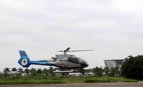 | Trực thăng EC-130T2 hạ cánh tại Ga trực thăng sân bay Gia Lâm. (Ảnh: Văn Hùng). |