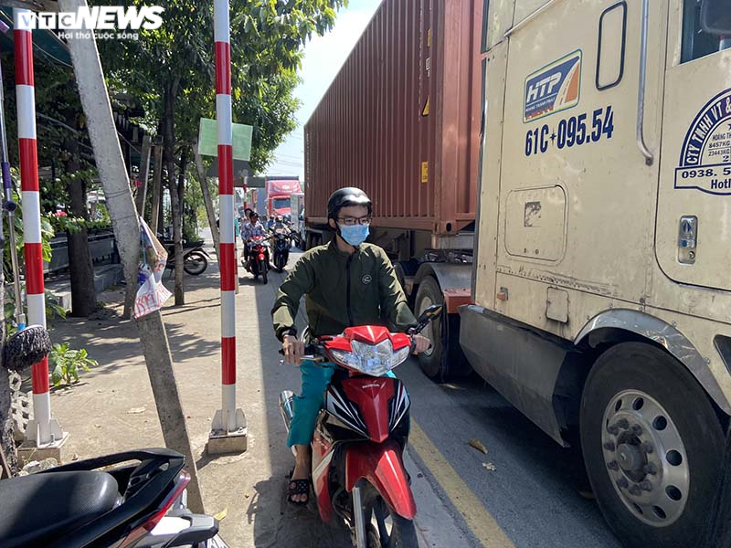 Chị Lan (31 tuổi, ngụ Bình Dương), buôn bán ven tuyến đường này cho biết, mật độ xe tải, container qua đây quá lớn khiến tình trạng tắc đường thường xuyên xảy ra. Nhiều xe tải, container chạy lấn hết cả phần đường dành cho người đi xe máy, buộc họ phải leo lên vỉa hẻ để di chuyển.