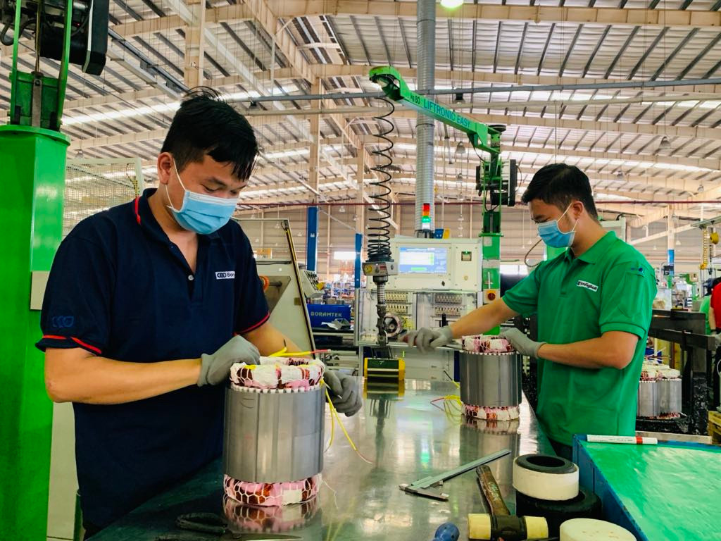 Sản xuất tại Công ty TNHH NTI Vina ở KCN VSIP 2 - nhóm doanh nghiệp FDI trong khu công nghiệp luôn dẫn đầu mức thưởng Tết tại Bình Dương. (Ảnh: H. Linh)