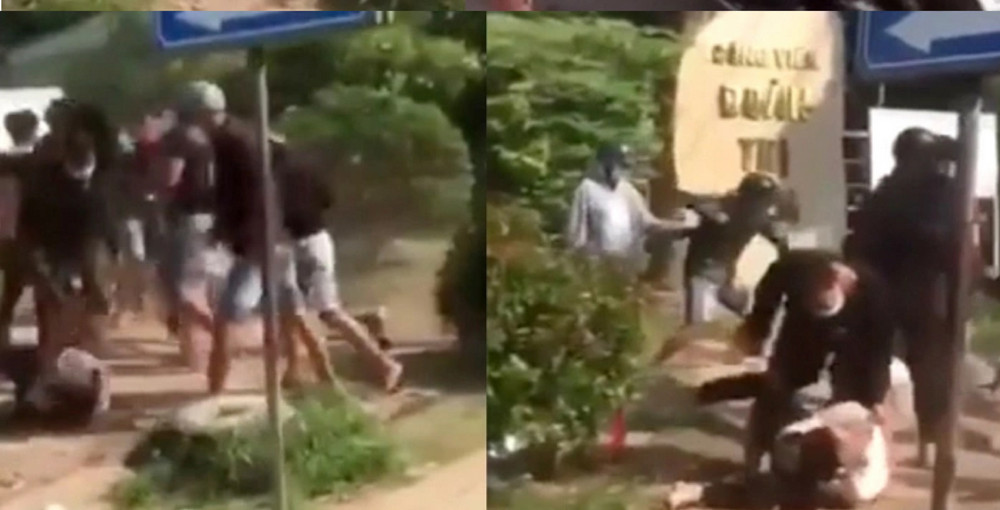 Khi một nạn nhân khuỵu xuống đất, những kẻ này còn nắm áo, đá thẳng vào đầu và các vùng khác trên cơ thể. Một số người chạy đến can ngăn nhưng bất thành, các nạn nhân chỉ biết ôm đầu chịu trận.