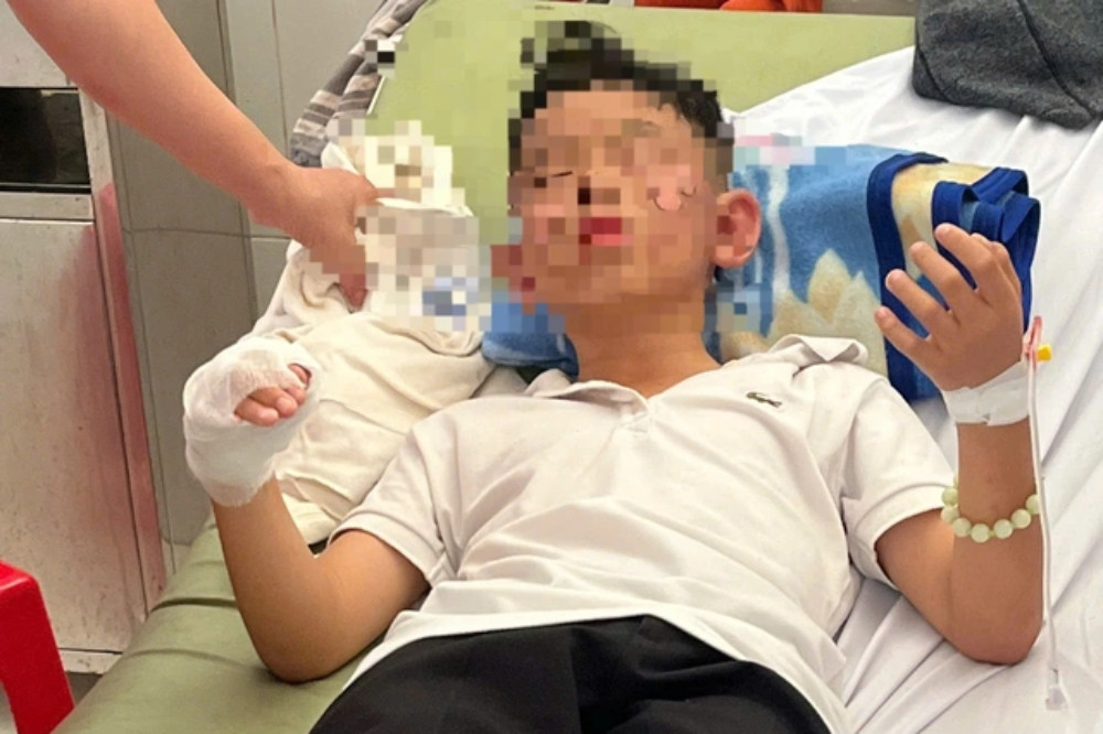 Trong lúc đang ăn lẩu, một bình gas ở bếp đang nấu lẩu bỗng phát nổ khiến 2 cô giáo và 7 học sinh (2 em tiểu học và 5 em THCS) bị bỏng.