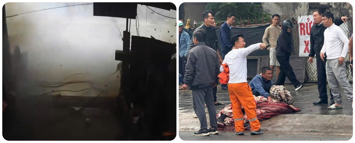 Hiện trường vụ tai nạn nổ bình khí nén do hàn xì tại xã Tiền Hải, tỉnh Hưng Yên khiến một người tử vong, một người bị thương ngày 23/2.