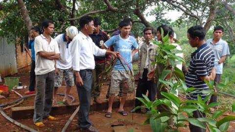 Ngay sau đó, mọi người cùng nhau bủa vây đi tìm thì phát hiện một cái hố mới đào ở vườn sau nhưng chỉ thấy dấu chân của hai cháu Mrang và Bách chứ không thấy hai cháu bé đâu.