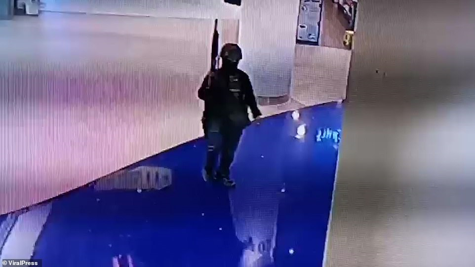 Trước khi bước vào Terminal 21 xả súng, y bắn nổ một số bình khí nén bên ngoài làm bùng lên một vụ nổ lớn.