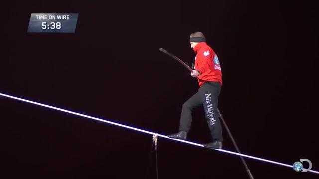 Nik Wallenda thực hiện màn bịt mắt đi trên dây ở độ cao 183 mét giữa hai tòa tháp ở Chicago, Mỹ mà không hề có đồ bảo hiểm.