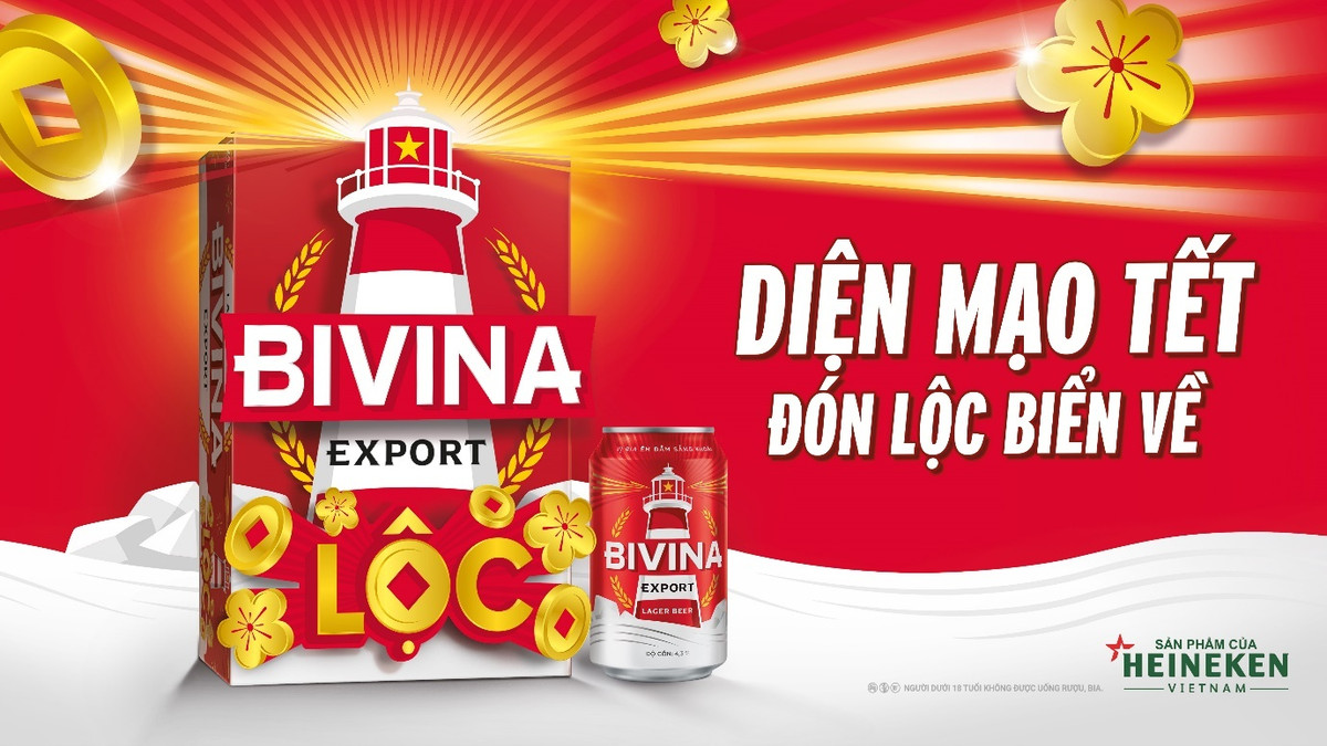Với phiên bản thùng Tết, họa tiết đồng tiền tài lộc và hoa mai khởi sắc được lồng ghép tinh tế, cùng lời chúc “Lộc” mở đầu cho hành trình mới nhiều may mắn và bình an. Không chỉ là món quà trao tay, mỗi thùng Bivina còn gửi trao "Lộc Biển" - mong một năm mới đủ đầy và nhiều may mắn đến người tiêu dùng trong dịp Tết.