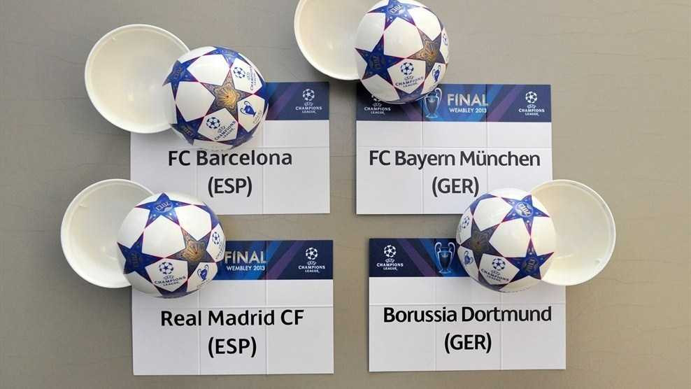 Và cuối cùng, điều nhiều người chời đợi về một cuộc đại chiến giữa hai nền bóng đá Tây Ban Nha và Đức đã thành hiện thực. Theo đó ở cặp bán kết 1. Á quân Champions League, Bayern Munich sẽ gặp Barca. Trận bán kết hai là cuộc đối đầu giữa Borussia Dortmund và Real Madrid.