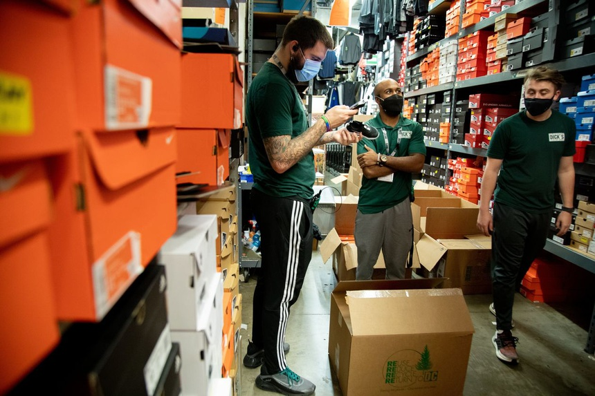 Khi đại dịch bùng phát, Dick's đóng tất cả cửa hàng. Nhiệm vụ của anh Clark chuyển sang chuẩn bị đơn đặt hàng trực tuyến cho khách hàng. Đến tháng 4, người quản lý gọi cho anh để thông báo về quyết định giãn việc. "Tôi hoàn toàn hiểu điều đó", anh Clark nhớ lại. Trong thời gian đó, anh phải tiêu vào tiền tiết kiệm. Ảnh: WSJ.