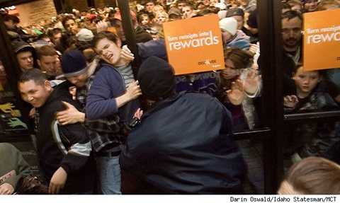 Cũng như mọi ngày thứ Sáu đen khác, từ đêm hôm trước, những người mua hàng đã đứng đầy ngoài cửa, sẵn sàng ùa vào cửa hàng để "nhặt" những món khuyến mại giá hời.