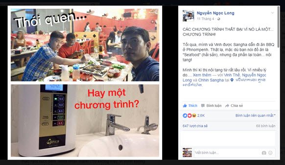 Sự việc bắt đầu từ status cổ vũ thói quen uống nước có kiềm của blogger Nguyễn Ngọc Long.