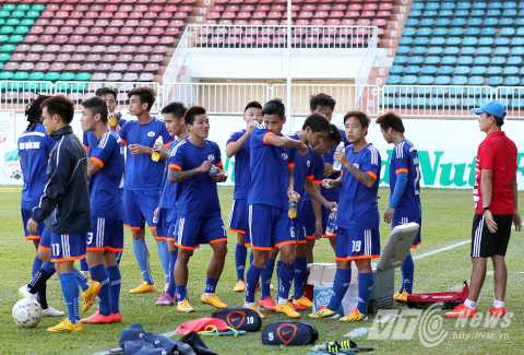 | Than Quảng Ninh tập buổi cuối trên sân Pleiku (Ảnh: Minh Trần) |