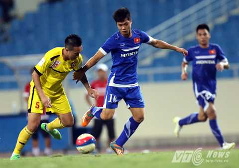 | Hữu Dũng (phải) được đôn lên tuyển khá bất ngờ (Ảnh: Quang Minh) |