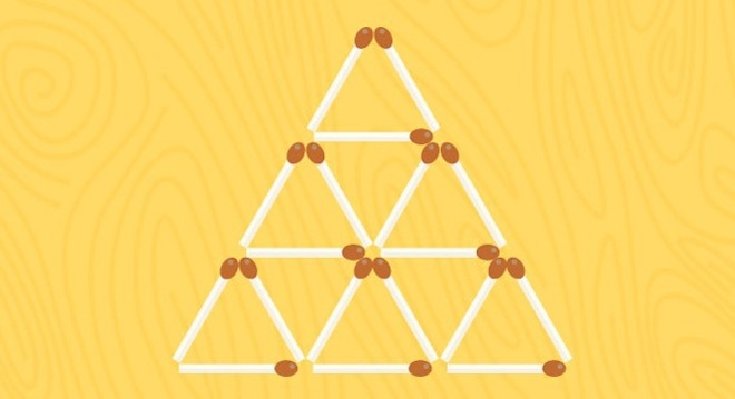 Những que diêm xếp thành hình dưới đây. Bạn cần bỏ bớt 5 que diêm để có được 5 hình tam giác bằng nhau.