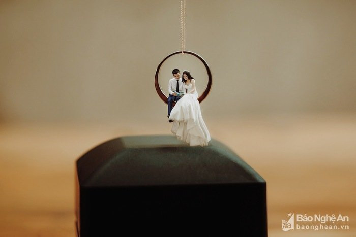 Chú rể Nguyễn Anh Tuấn (20 tuổi) và cô dâu Vũ Hồng Hạnh (19 tuổi) cùng quê huyện Diễn Châu (Nghệ An) vừa cho bạn bè và cộng đồng mạng ngạc nhiên, thích thú với bộ ảnh cưới tí hon của họ.