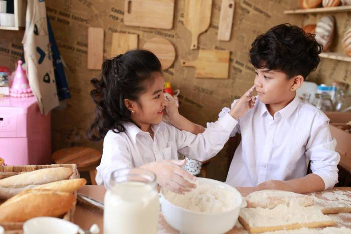 Với sở thích nấu bếp, cặp đôi mẫu nhí Song Bảo đã thực hiện bộ ảnh vào bếp cùng nhau. Cả hai đều thích thú với việc được vào bếp làm bánh.