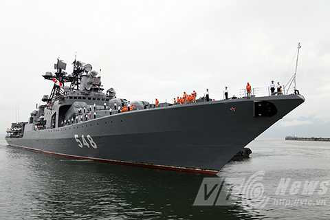 | Đội tàu Hải quân Nga gồm tàu chống ngầm Đô đốc Pantelev, tàu kéo SB-522, cùng tàu chở dầu Penchega và 482 sỹ quan, thủy thủ Hải quân Nga đã cập cảng Tiên Sa. |