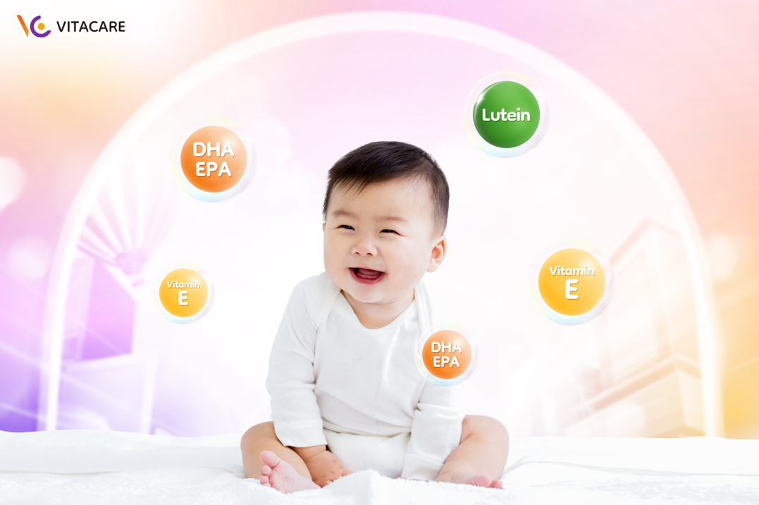 Lutein chiếm hơn 60% tổng carotenoid tại điểm vàng của mắt, có khả năng lọc ánh sáng xanh và bảo vệ tế bào thị giác khỏi tổn thương. Trẻ nhỏ không tự tổng hợp được lutein, nên cần bổ sung qua thực phẩm hoặc sản phẩm chuyên biệt. Vitamin E tự nhiên là chất chống oxy hóa mạnh, giúp bảo vệ DHA và lutein khỏi quá trình oxy hóa, đồng thời duy trì tính toàn vẹn của màng tế bào thần kinh, hỗ trợ dẫn truyền tín hiệu ổn định.