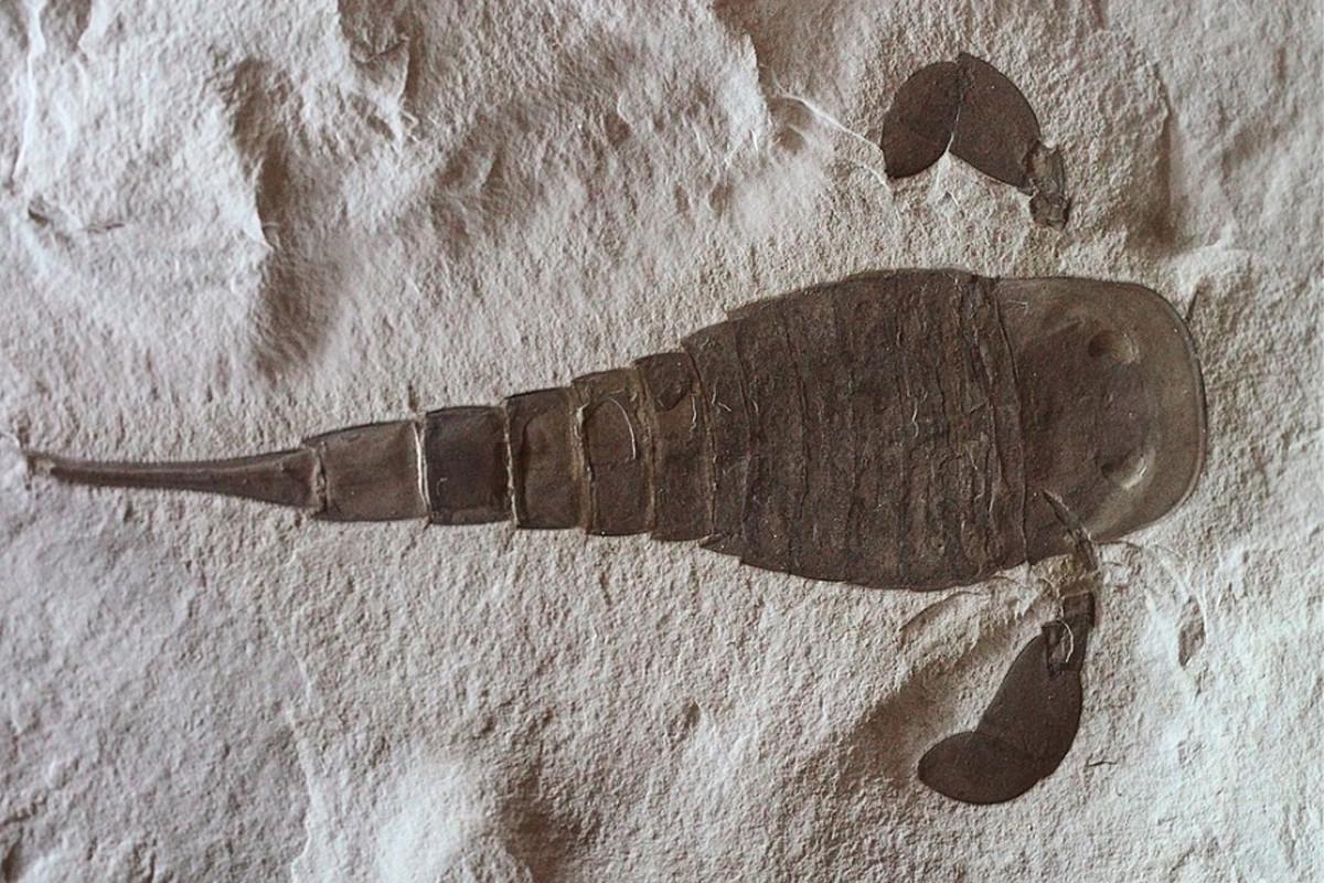 Giới khoa học tin rằng một loài giáp xác biển khổng lồ thuộc bộ Eurypterids - bọ cạp biển đã gây ra vết xước trên vỏ và phần đầu của con bọ ba thùy.
