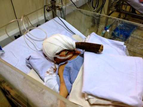 “Sau hơn 4 tiếng phẫu thuật rút bỏ dao thành công, cháu bé đã được cứu khỏi lưỡi hái của tử thần, hiện sức khỏe của cháu bé vẫn đang được theo dõi, chưa thể nhận định gì, chưa thể tiên lượng điều gì vì vết thương quá nặng, nguy hiểm tính mạng", bác sĩ phẫu thuật nói.