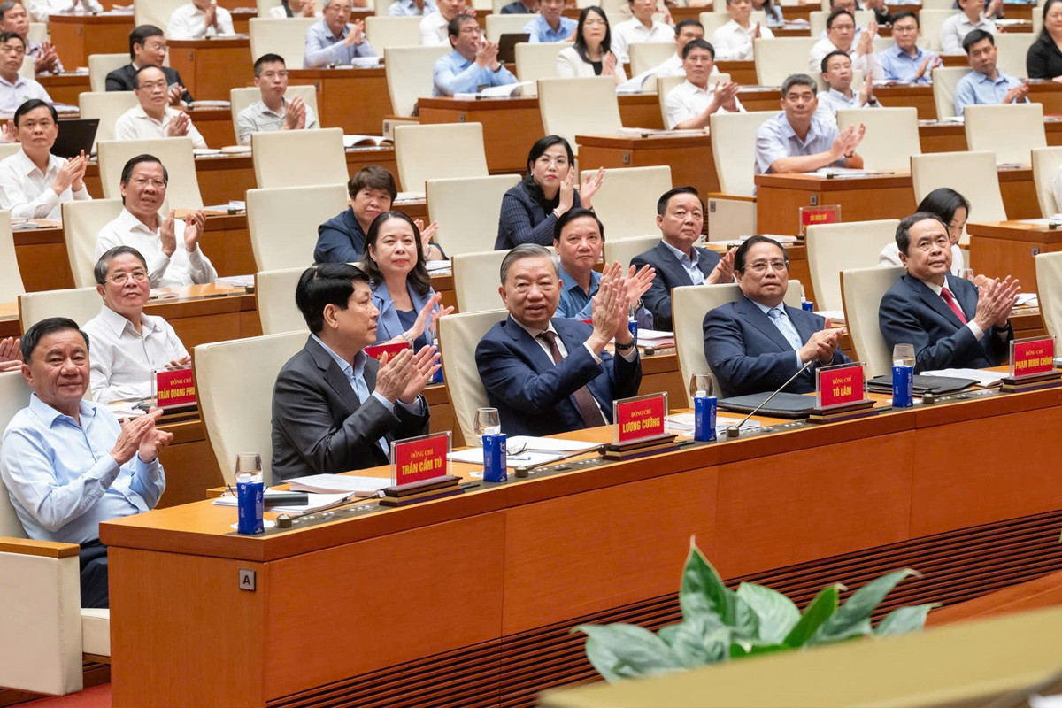 Tổng Bí thư Tô Lâm và các lãnh đạo Đảng, Nhà nước tham dự Hội nghị toàn quốc quán triệt, triển khai Nghị quyết Trung ương 11, hồi giữa tháng 4. (Ảnh: VGP)