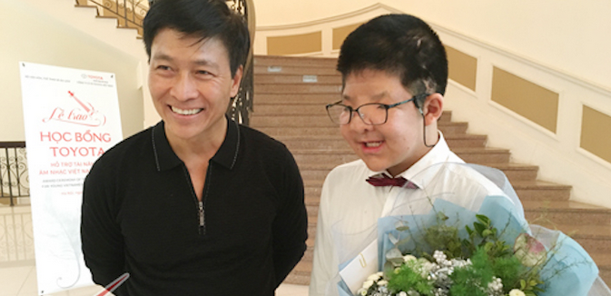 "Em rất tự tin mình chơi đàn hay và biết ơn các thầy cô trong trường đã dạy dỗ và em hứa sẽ cố gắng học tập tốt hơn" - sinh viên Nguyễn Anh Tuấn nói. Cùng niềm vui với con trai, diễn viên Quốc Tuấn bảo đây chính là một trong những thành quả ngọt ngào nhất mà bố con anh nhận được trong năm 2017.