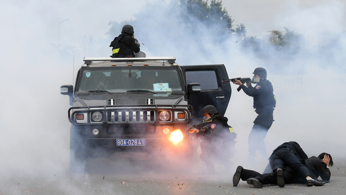 Công an, bộ đội diễn tập chống khủng bố bảo vệ Đại hội XIII của Đảng