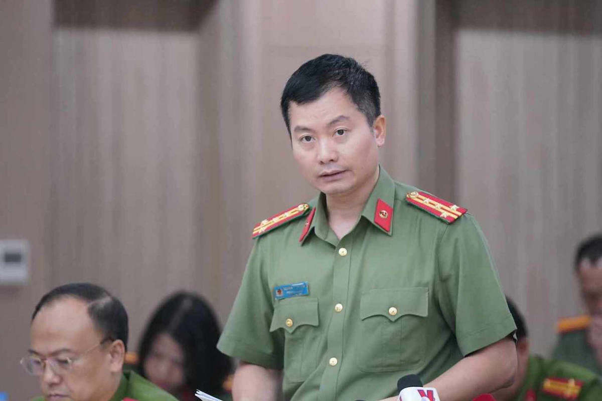 Đại tá Nguyễn Tuấn Hưng, Cục Phó A09 thông tin tại họp báo.
