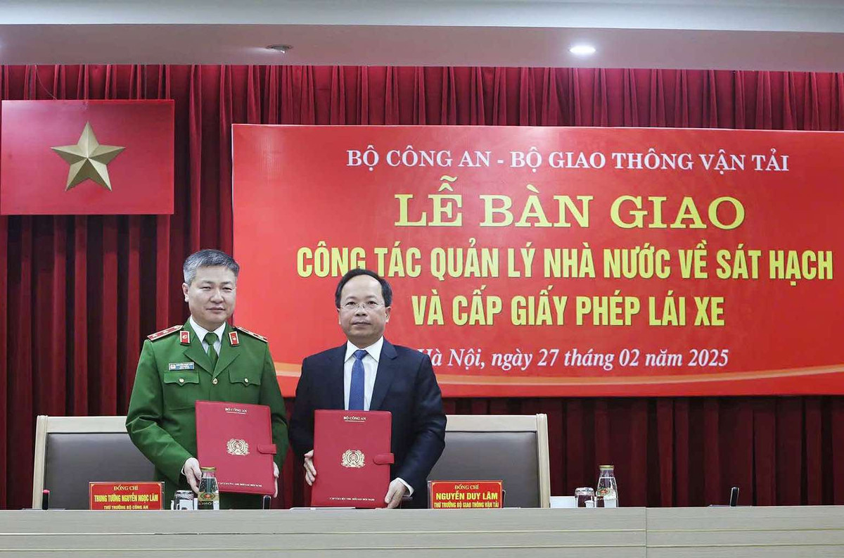 Bộ Công an và Bộ Giao thông vận tải bàn giao công tác quản lý về sát hạch và cấp giấy phép lái xe.