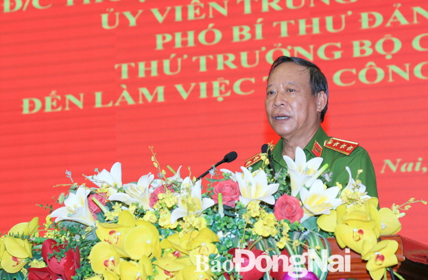 Thượng tướng Lê Qúy Vương - Thứ trưởng Bộ Công an làm việc với Công an tỉnh Đồng Nai. (Ảnh: Công an Đồng Nai)