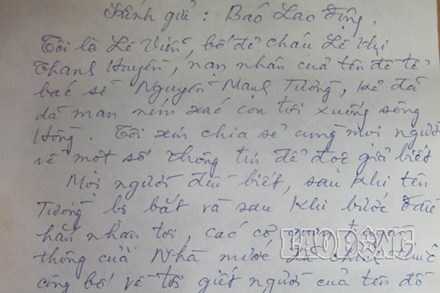 Ông Lê Văn Viễn bố đẻ nạn nhân Huyền đã gửi tới tòa soạn bức tâm thư cho rằng bị can Nguyễn Mạnh Tường đã phạm tội giết người.