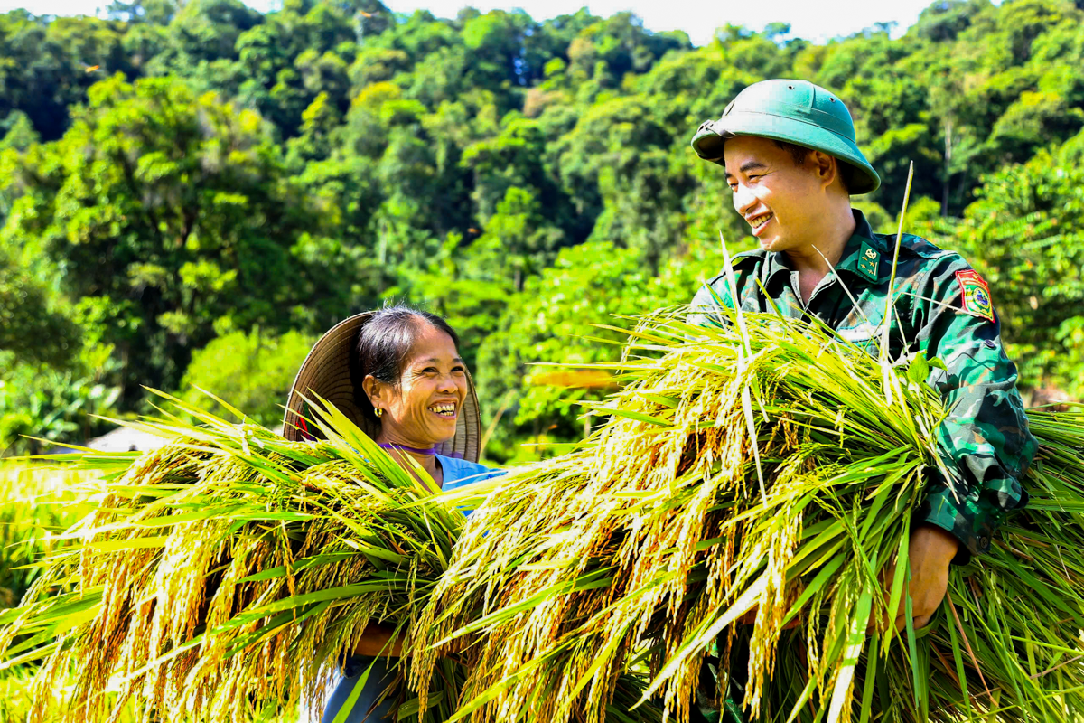 Ngày 5/9, Đồn Biên phòng Bản Giàng (Bộ đội Biên phòng Hà Tĩnh) phối hợp Hội Nông dân huyện Hương Khê (Hà Tĩnh) huy động lực lượng, phương tiện, xuống đồng giúp đỡ bà con dân tộc Chứt – Bản Giàng 2 (xã Hương Vĩnh, huyện Hương Khê) thu hoạch vụ lúa hè thu, phòng chống bão số 3.