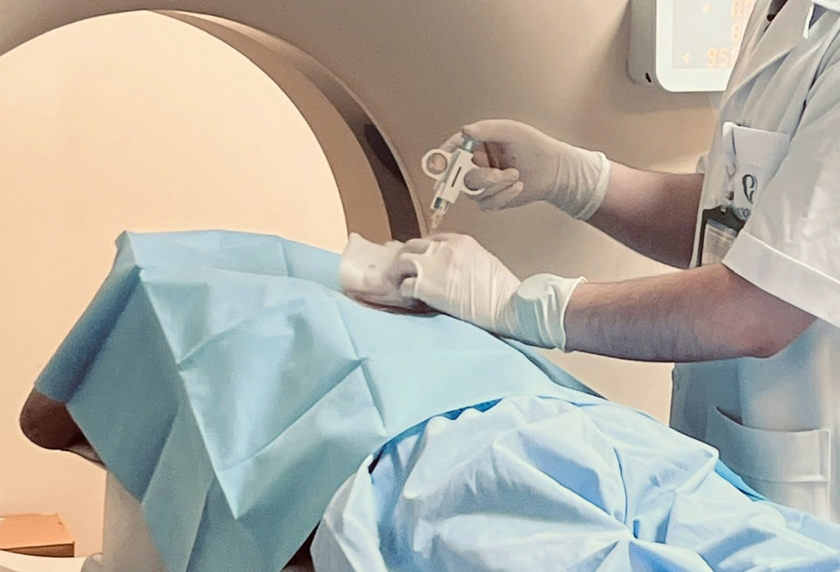 Trong bối cảnh không còn phương án chuẩn mực nào khác nếu thiếu chẩn đoán mô bệnh học, ê-kíp quyết định thực hiện thủ thuật. Dưới hướng dẫn của hệ thống CT đa dãy độ phân giải cao, mũi kim sinh thiết được định vị chính xác, đi qua “khe cửa hẹp” an toàn duy nhất để tiếp cận khối u và lấy mẫu bệnh phẩm thành công.
