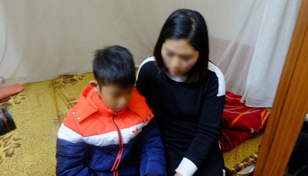 Từ đó đến nay cháu bé này cùng với người anh trai ruột thường xuyên bị bố đánh bằng dây điện, thậm chí là dùng dao đe dọa.