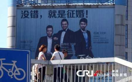 Theo mô tả của Chinanews, 3 người đàn ông trên đã chi 150.000 nhân dân tệ (tương đương 5 tỷ VNĐ) cho tấm quảng cáo tuyển vợ này.