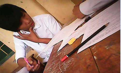 Lãnh đạo Bộ GD-ĐT cũng nhận định vụ gian lận thi cử tại Bắc Giang có dấu hiệu của việc đưa bài từ ngoài vào (Ảnh cắt từ clip)