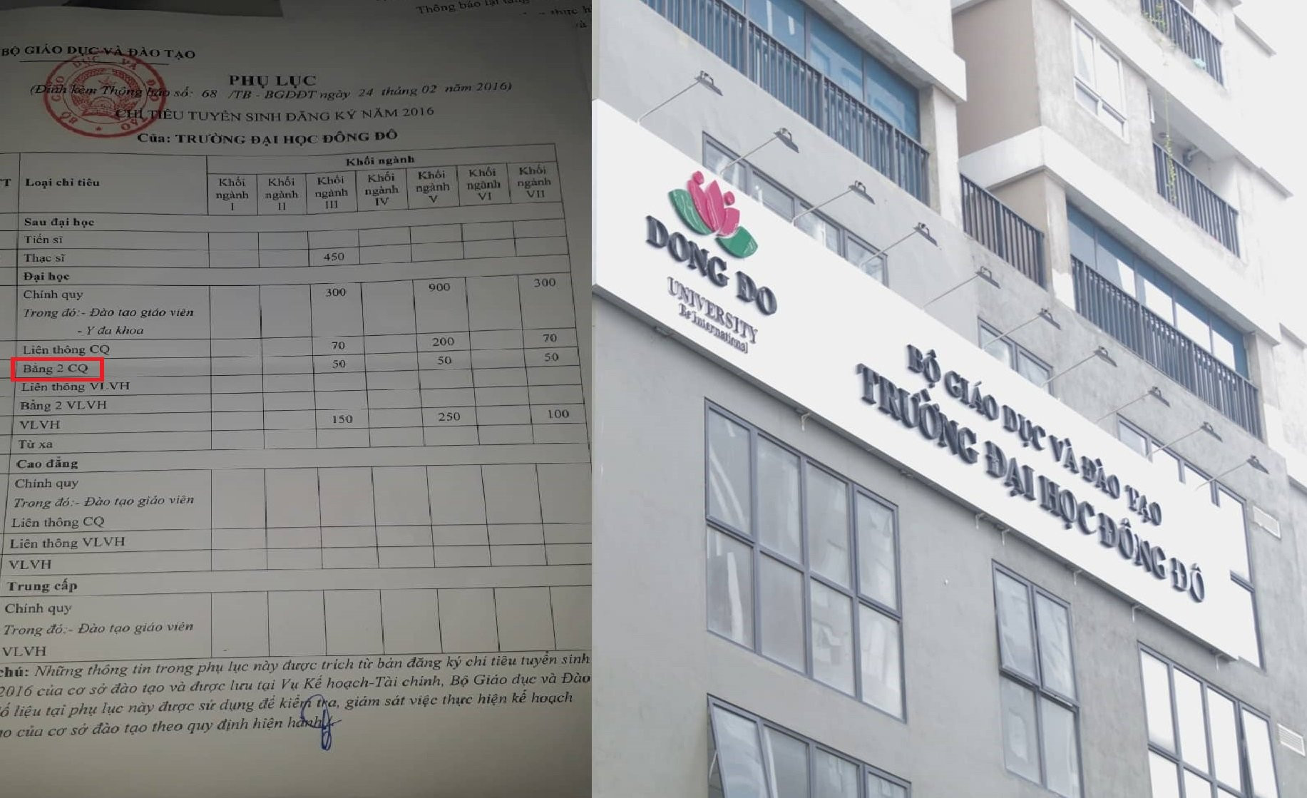 Bộ GD&ĐT khẳng định không cho phép Đại học Đông Đô tuyển sinh, đào tạo và cấp văn bằng 2 trong nhiều năm, nhưng theo thông tin mà VTC News có được, trong 3 năm gần đây (từ 2015 đến 2017) Bộ xác nhận Chỉ tiêu tuyển sinh đăng ký của Đại học Đông Đô, trong đó có nội dung đào tạo văn bằng 2.