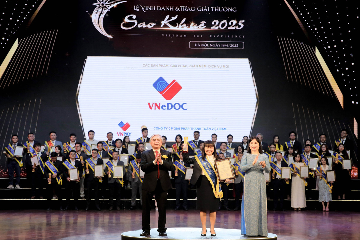 Mới đây, hai giải pháp công nghệ do VNPAY phát triển là Nền tảng ký văn bản và hợp đồng điện tử VNeDOC và Giải pháp định danh trực tuyến VNPAY eKYC được trao danh hiệu “Sản phẩm xuất sắc” tại Giải thưởng Sao Khuê 2025.