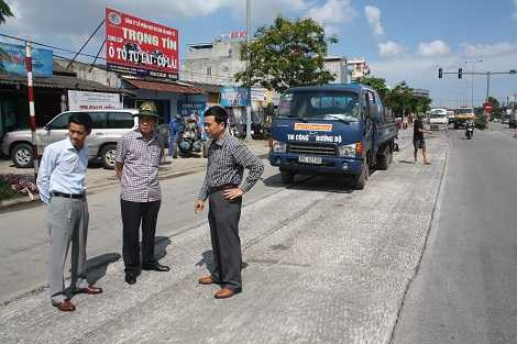 Lãnh đạo Tổng cục Đường bộ Việt Nam kiểm tra xử lý thí điểm hằn lún vệt bánh xe tại QL5 (Ảnh: Đường bộ) |