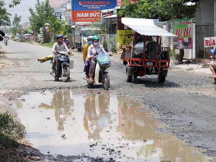 Một đoạn đường bị xuống cấp trên QL57. (Ảnh: VGP)