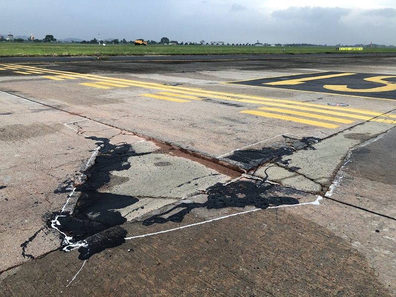 Tình trạng xuống cấp ở các đường lăn sân bay Nội Bài.